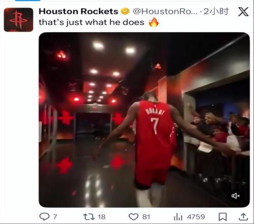 這場(chǎng)比賽的賽后,火箭隊(duì)有很多的球迷在球員通道排隊(duì)等待杜蘭特,他們一一跟kd擊掌致敬,所有人都知道這場(chǎng)勝利是杜蘭特幫忙拿下的,外界都說(shuō)37歲的杜蘭特是休斯敦的雇傭兵,但他卻不止一次說(shuō)熱愛(ài)這座城市,為這座城市而戰(zhàn)很榮幸。
