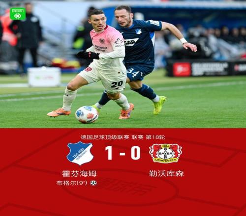 北京時間1月17日,2023-2024賽季德國足球甲級聯賽第18輪展開較量,霍芬海姆坐鎮主場迎戰勒沃庫森。比賽中,布格爾攻入全場唯一進球,幫助球隊取得領先。憑借這一進球,霍芬海姆以1比0戰勝對手,全取三分。