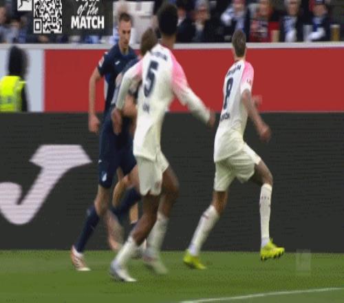 第9分鐘,布格爾任意球直接破門,霍芬海姆1-0勒沃庫森