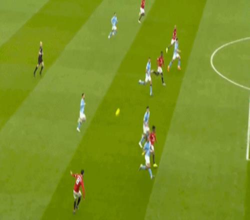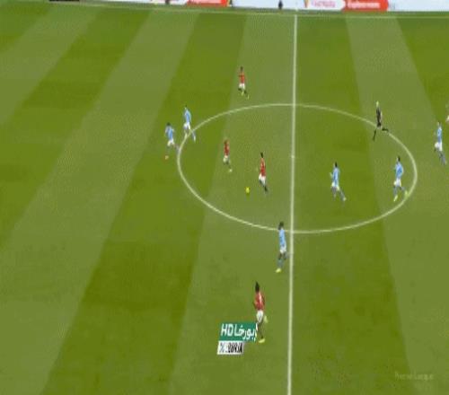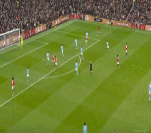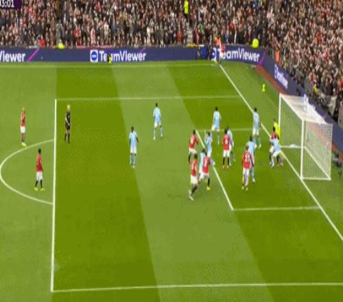 第4分鐘,多古左路低平球傳中,胡桑諾夫關鍵解圍,隨后B費開出角球,馬奎爾近距離頭球攻門擊中橫梁彈出,曼城逃過一劫。