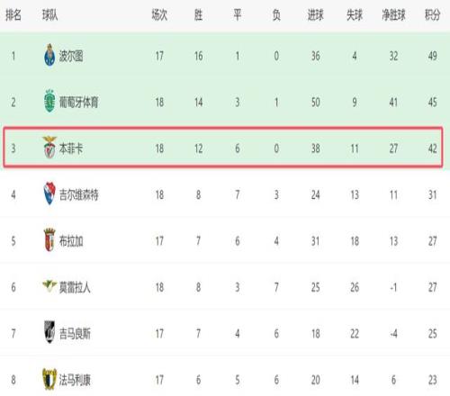 北京時間1月18日,葡超第18輪,本菲卡做客對陣里奧阿維,結果沒有任何懸念。此役憑借上半場的2個進球,本菲卡最終2-0完勝對手。拿到3分之后,本菲卡本賽季葡超繼續不敗。