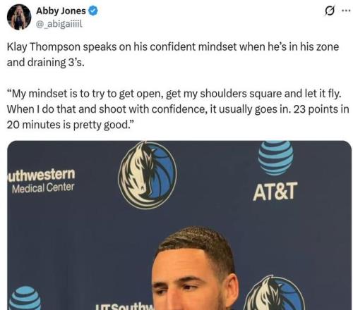賽后被問到本場比賽自己狀態(tài)為何如此神勇,克萊表示“我的心態(tài)就是找到空位,調(diào)整好姿勢然后果斷出手,當(dāng)我這樣做時(shí)投籃通常都能命中,20分鐘拿23分已經(jīng)是不錯(cuò)的表現(xiàn)啦。”