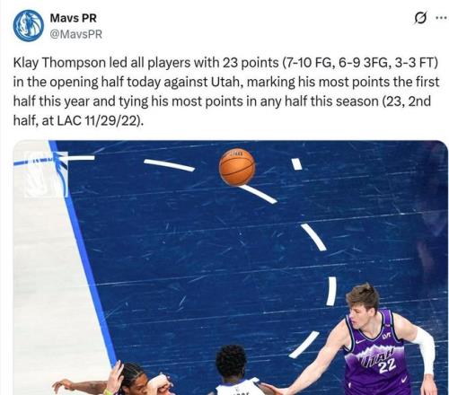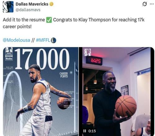 獨(dú)行俠官方也專門曬圖慶祝克萊連續(xù)兩場比賽迎來里程碑,在本場總得分突破17000分大關(guān)之前,克萊在前一場對陣爵士隊(duì)的比賽中,生涯三分命中率才超越利拉德升至NBA歷史第四。