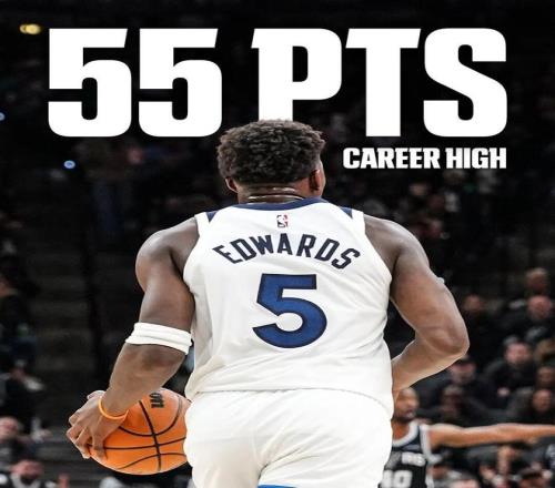 這場比賽,狼王愛德華茲打出了賽季最強一戰:全場出戰40分鐘,投籃33中19,三分16中9,罰球9中8,爆砍55分4籃板3助攻,正負值+8。