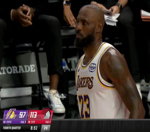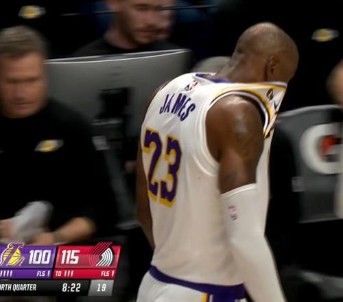 末節詹皇一度發力追分,但坑太大追不上了。關鍵是,詹姆斯在第三節最后時刻甚至還受傷了,當時時間還剩下16秒,球隊落后19分,勒布朗壓時間完成一個壓哨最后一攻,開拓者對他進行包夾,但是他從人群當中穿了過去,加速沖到籃下,強行完成一次逆天高難度滑翔上籃。
