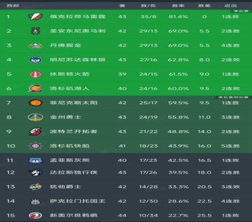 北京時間1月18日,今日的NBA常規賽結束了所有比賽,我們看看西部球隊的表現和最新排名變動!