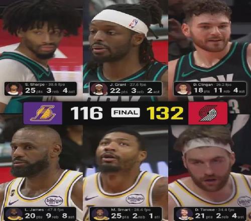 東契奇里夫斯艾頓全部休戰(zhàn),斯瑪特中途傷退,超級殘陣的湖人客場面對開拓者毫無還手之力,最終116-132大比分落敗。
