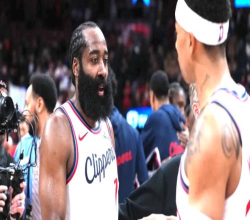 與倫納德的高效形成鮮明對比的,是哈登的掙扎。在這波逆襲中哈登咬牙苦苦支撐,同期雖然場均數據來到24.8分3.8籃板7.8助攻,看似不俗,但39.6%的投籃命中率與30.9%的三分命中率均處于生涯低谷。更致命的是他的狀態波動,防守端移動速度排名聯盟倒數第二,與東契奇一同淪為防守漏洞;進攻端第三節時常“隱身”,數據顯示,當比賽進入第三節時,哈登的兩項命中率跌至32.8%+20.9%。而快船也陷入一個怪圈,球隊要想贏球,倫納德與哈登的得分總和必須穩定在55-60分區間。但這套“雙核透支”的贏球模式,早已埋下隱患。