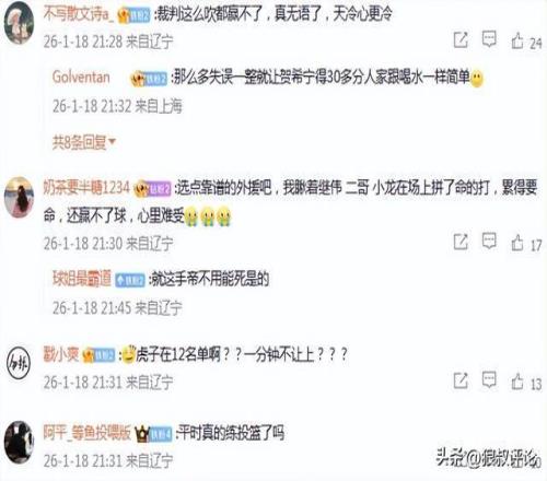 有球迷點評說道:那么多失誤一整就讓賀希寧得30多分人家跟喝水一樣簡單。