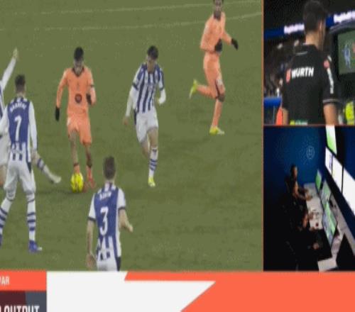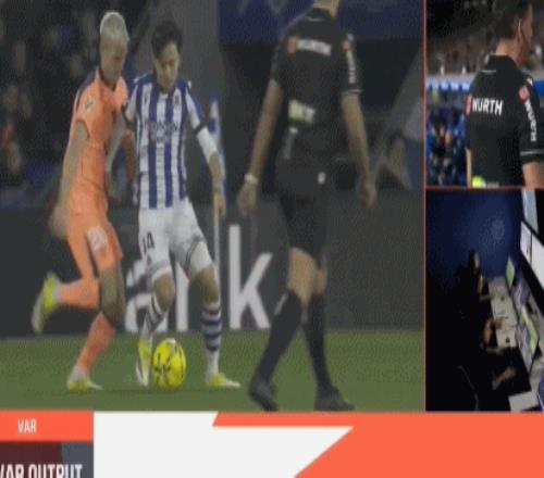 裁判回看VAR后認定奧爾莫確實對久保建英犯規在先,因此進球被判無效。