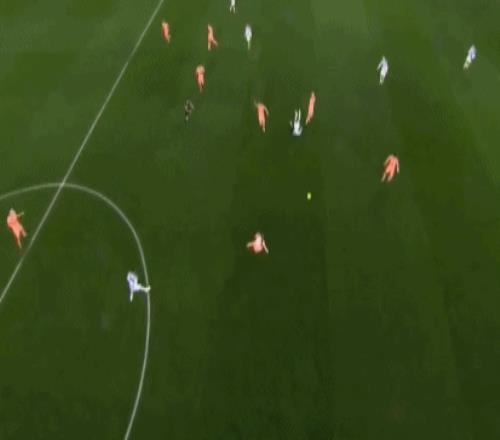 第38分鐘,巴爾德左路突破橫傳,奧爾莫無人防守,從容內切兜射,雷米羅化解險情。