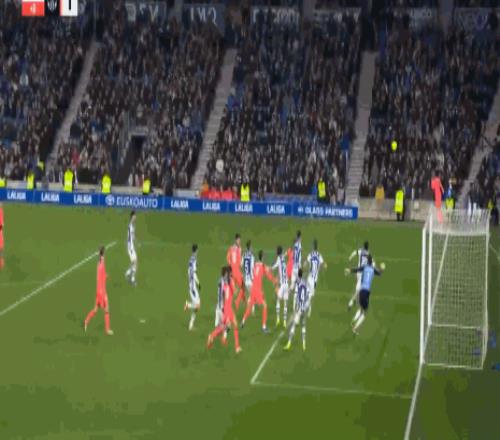 第32分鐘,奧亞薩瓦爾凌空抽射幫助皇家社會(huì)取得領(lǐng)先。