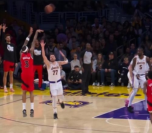 首節(jié)開(kāi)打,博伊爾斯反擊接球直接起飛完成雙手暴扣,猛龍隊(duì)先拔頭籌。詹姆斯奮力追防,高高躍起送阿巴基釘板大帽,艾頓背打轉(zhuǎn)身勾手命中,湖人開(kāi)局4-2領(lǐng)先。博伊爾斯撞倒東契奇被吹進(jìn)攻犯規(guī),抱頭難以置信,猛龍果斷挑戰(zhàn)最終改判東契奇防守犯規(guī)。東契奇造進(jìn)攻犯規(guī)被改判后,連續(xù)兩次上籃都被扇飛,怒噴裁判干擾球不吹,又吃到技犯,湖人落后到8分。東契奇命中兩記三分再上籃連得8分,馬穆連續(xù)投籃命中5中5連得12分回應(yīng)。馬穆再送出猛龍首節(jié)第11次助攻,巴恩斯籃下空無(wú)一人扣籃得手,首節(jié)戰(zhàn)罷,猛龍30-23領(lǐng)先湖人。