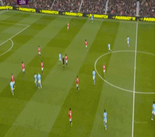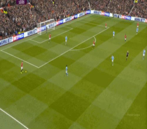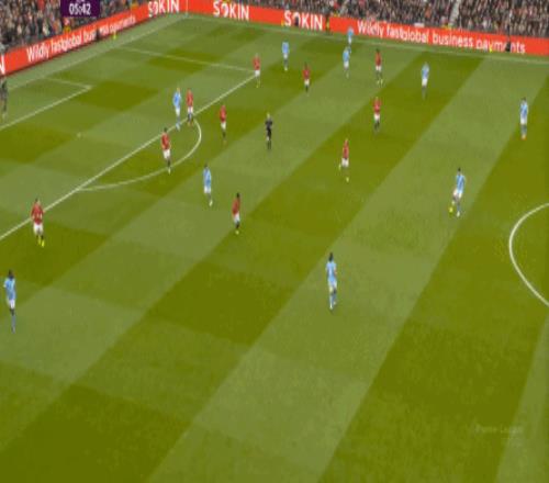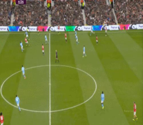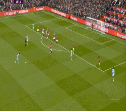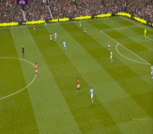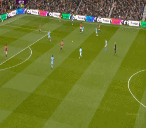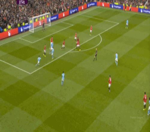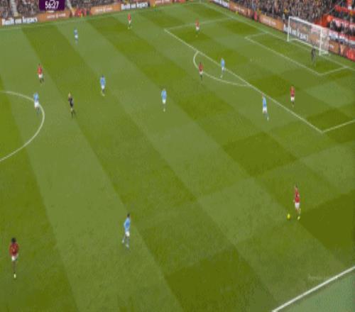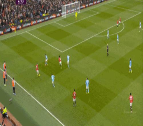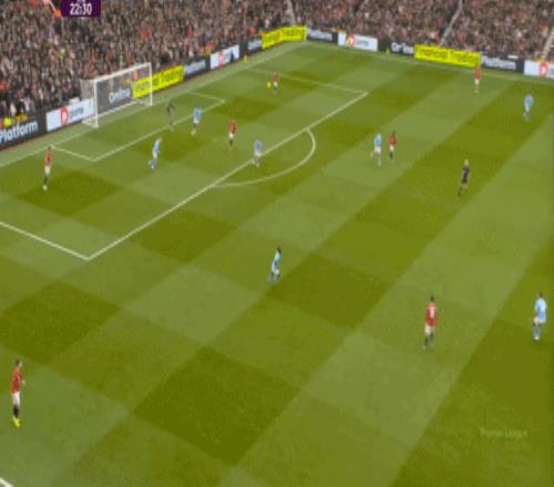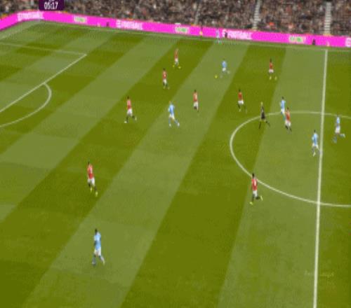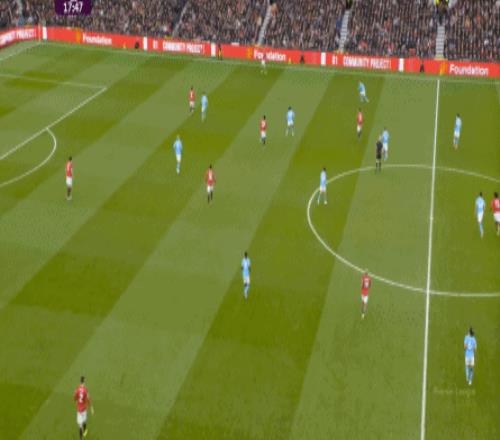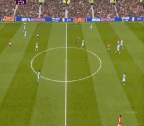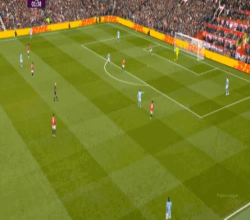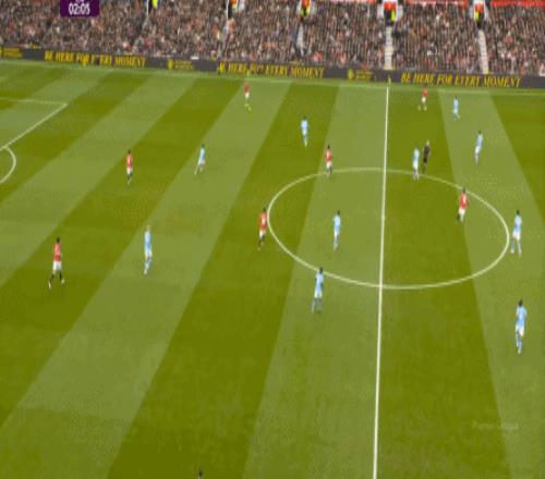 這也使得曼聯(lián)在開場只有2分鐘的時候,就用兩次長球直打,直接進入了曼城的禁區(qū)線空間內(nèi):