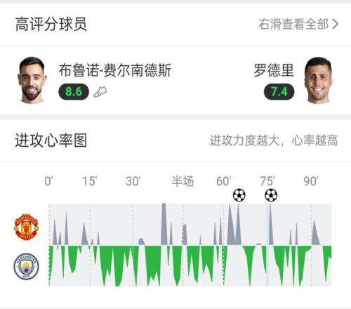 這個時候,你再來看曼聯(lián)和曼城在“進攻心率圖”上的表現(xiàn):