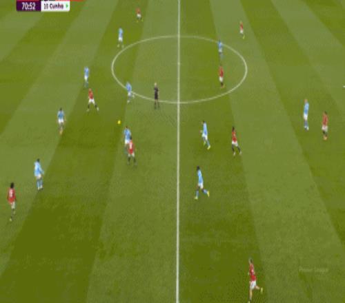 至于進攻端,當(dāng)曼城無法覆蓋掉隊形前壓之后留出的空間的時候,當(dāng)曼聯(lián)可以不必?zé)┬挠谥圃炜臻g,就可以讓布魯諾和姆貝烏莫在空間里予取予求地聯(lián)系到邊路的隊友的時候,進攻打得好其實也是應(yīng)該的。