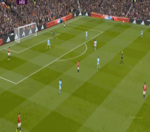 這是曼聯(lián)在本賽季一直都有的賽程優(yōu)勢,之后也會延續(xù)下去,但你會看到,哪怕是在前場,在這次進攻里,布魯諾甚至可以在禁區(qū)線前先想后傳,曼城都沒有及時給到壓力: