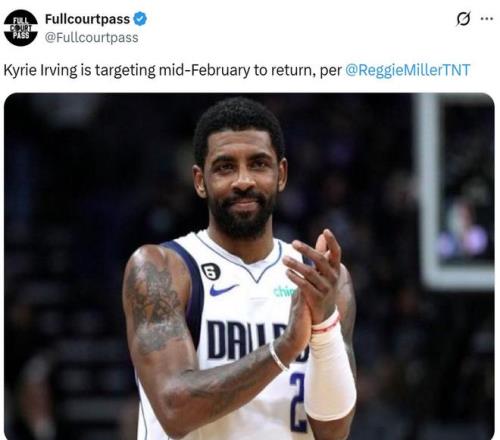 NBC評論員雷吉-米勒在解說本場比賽期間公開透露,歐文的計劃是在2月中旬復出。