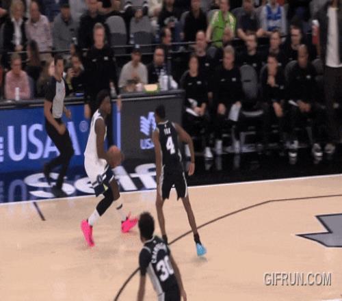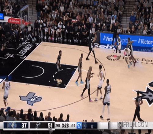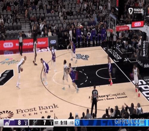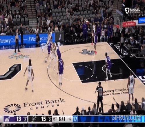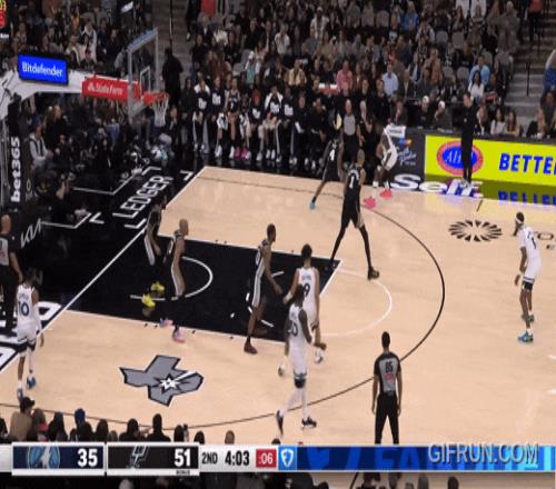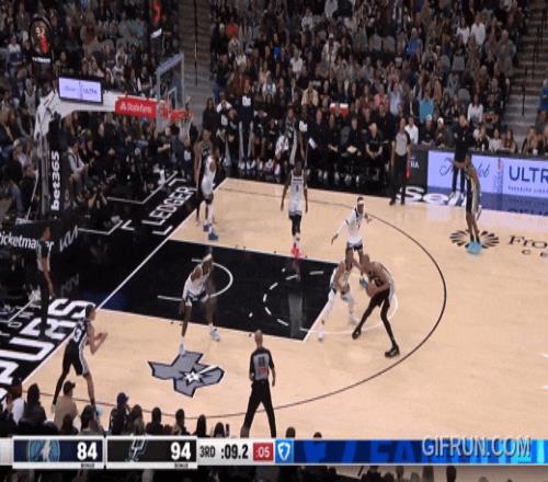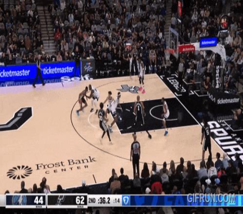 還是馬刺最快的福克斯來跟華茲,被華茲迎面強投:干擾不到。