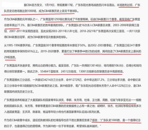 隨著廣東隊(duì)拿到第1000場勝利,成為CBA又一個第一,CBA公司也是正式發(fā)文祝賀廣東隊(duì)!達(dá)到隊(duì)史1000勝的成就!