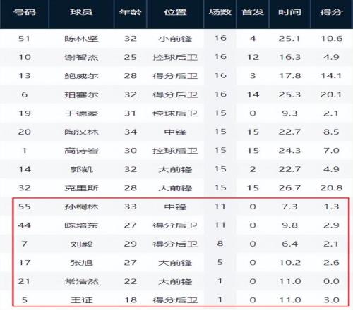 陳培東本賽季上場時間銳減,場均只有9.8分鐘,但出場次數(shù)達(dá)到11次。尤其是從客場對陣北京以后,他的出場機(jī)會明顯增加,其具有“神經(jīng)刀”屬性的三分球投射,在某些時候還是可以為球隊帶來幫助的。因此,陳培東被擠出的可能性也不是很大。