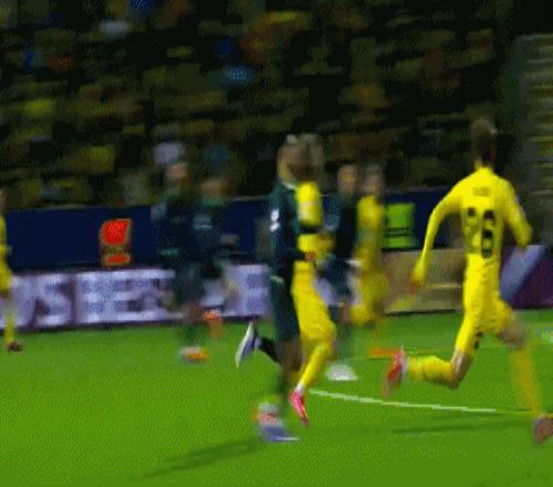 第22分鐘,博德閃耀球員布隆貝格反擊,禁區(qū)內(nèi)送出傳中,卡斯帕-霍后點小角度頭球攻門,打穿曼城門將多納魯馬的封堵,博德閃耀先聲奪人,1-0!