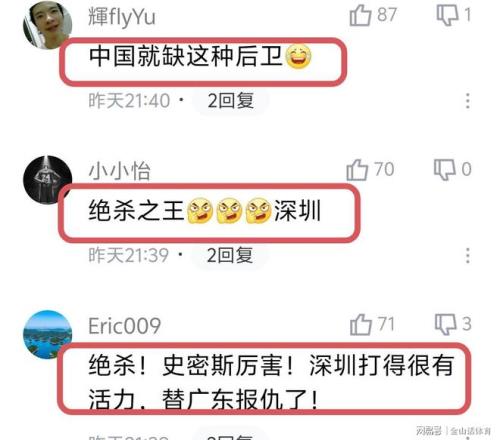23歲的小外援史密斯,本賽季持續出色的發揮,以及本場比賽搶眼的表現,令網友們贊不絕口,紛紛留言道“這球太精彩了,看看人家的外援,北京選的什么外援,差距太明顯了!”;“絕殺反絕殺,真精彩.”;“中國就缺這種后衛”;“絕殺之王,深圳!”;“絕殺!史密斯厲害!深圳打得很有活力!”;“最后一回合神仙打架,真特么過癮”;“就看了個絕殺和反絕殺!!”;“把深圳這個小外援歸化吧,還年輕可以用很久。”……