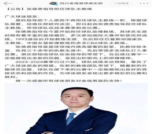 值得一提的是,張德貴不是第一次扮演“救火教頭”。 2021年他接替外教凱撒執教天津隊時,就曾帶領球隊時隔8年重返季后賽。