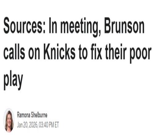 多位消息人士稱,球隊在11場比賽中輸掉9場,并吞下4連敗后,布倫森在會議中向隊友們明確,尼克斯必須在隊內為一月以來的糟糕表現尋找解決辦法,而非寄希望于教練組。