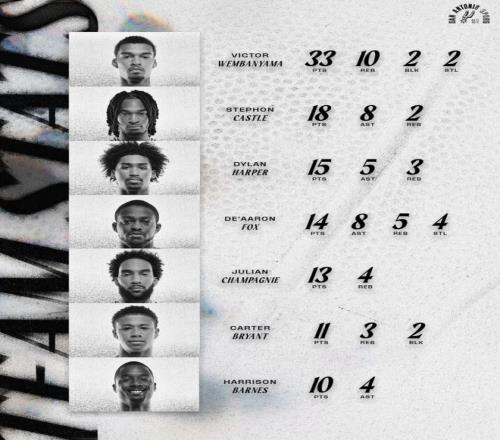 文班亞馬在昨夜對(duì)陣爵士的比賽中,26分鐘就拿到33分10籃板2蓋帽2搶斷1助攻,文班亞馬的效率非常之高,這背靠背的第二場(chǎng)他在首節(jié)沒有進(jìn)入進(jìn)攻模式單節(jié)3中0拿2分1籃板1助攻。