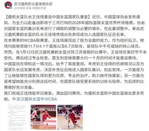 這件事情的起因,是中國女籃為了備戰(zhàn)2026年國際籃聯(lián)女籃世界杯資格賽,籃協(xié)對(duì)國家女籃的集訓(xùn)名單進(jìn)行了細(xì)致的調(diào)整與必要的增補(bǔ),來自武漢盛帆黃鶴女籃的隊(duì)長(zhǎng)王佳琦憑借出色表現(xiàn)成功入選國家隊(duì)征召名單,她在本賽季表現(xiàn)很強(qiáng)勢(shì),作為組織后衛(wèi),她場(chǎng)均能夠攻獻(xiàn)11.7分4.1個(gè)籃板以及6.7次助攻(近期遇到傷病沖擊)。