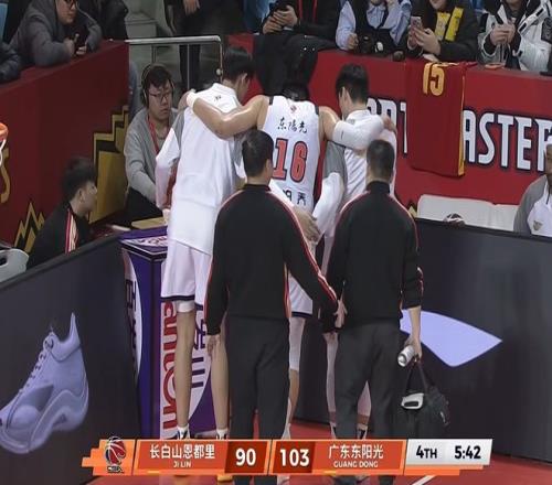 廣東隊(duì)大勝吉林隊(duì)21分!然而,廣東隊(duì)主教練杜鋒卻開(kāi)心不起來(lái),因?yàn)椋?米11內(nèi)線悍將焦泊喬,在比賽中意外受傷,情況令人擔(dān)憂!
