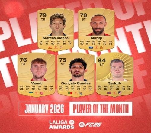 西甲1月最佳球員候選:穆里奇領(lǐng)銜,瑟洛特、瓦納特入選 懂球帝 2026-01-22 04:02:55 北京時(shí)間1月22日,西甲1月最佳球員候選名單公布,這5名球員為馬科斯-阿隆索、穆里奇、瓦納特、貢薩洛-格德斯、瑟洛特。塞爾塔 馬科斯-阿隆索(進(jìn)球:1粒,出場時(shí)間270分鐘)馬略卡 穆里奇(進(jìn)球:5粒,出場時(shí)間270分鐘)赫羅納 瓦納特(進(jìn)球:4粒,出場時(shí)間268分鐘)皇家社會(huì) 貢薩洛-格德斯(進(jìn)球:2粒,助攻1次,出場時(shí)間220分鐘)馬競 瑟洛特(進(jìn)球:2粒,出場時(shí)間176分鐘)西甲免費(fèi)觀看_瓦納特免費(fèi)觀看_瑟洛特免費(fèi)觀看_西甲高清在線_瓦納特高清在線_瑟洛特高清在線 西甲 瓦納特 瑟洛特 皇家社會(huì) 路易斯·穆里奇 馬科斯-阿隆索 上一篇: 西甲1月最佳U23球員候選:貢薩洛領(lǐng)銜,費(fèi)爾明、莫萊羅入選 下一篇: 德天空:萊萬在美職聯(lián)有很多選擇,去美國對(duì)他也很有吸引力