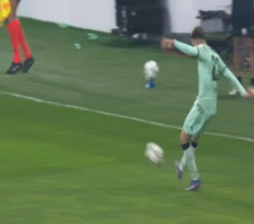 第37分鐘,貝爾納斯科尼左路內切射門,皮球擦柱而出