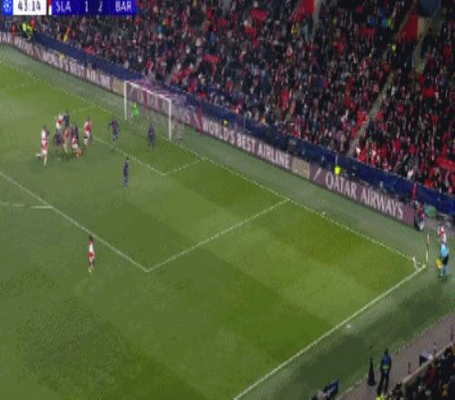 比賽剛剛開打第4分鐘,巴薩后防就集體夢游,給了紹里起腳攻門的機會,好在后者沒有壓住一腳放了高射炮,不過7分鐘之后,布拉格斯拉維亞還是率先取得領先,右側角球開出后,前點頭球一蹭,后點包抄的庫謝伊將皮球撞入球門,將比分改寫為了1-0,憑借此球布拉格斯拉維亞打破了自己連續5場歐冠的進球荒。