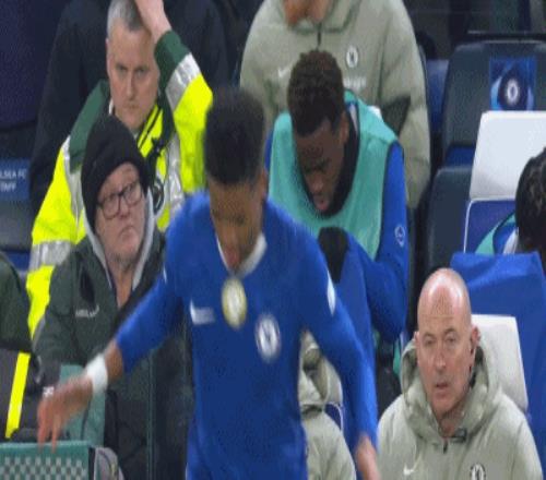 第17分鐘,恩佐頭球破門,裁判判罰進攻犯規進球無效