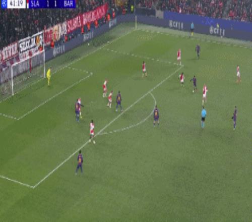 比賽開(kāi)打后不久,巴薩的城門(mén)便宣告失守,第10分鐘,布拉格斯拉維亞角球機(jī)會(huì),霍萊什前點(diǎn)頭球擺渡,后點(diǎn)的庫(kù)謝伊卡住身位近距離撞射入網(wǎng),0:1!這是巴薩隊(duì)史第一次連續(xù)10場(chǎng)歐冠都遭遇了丟球。第29分鐘,埃里克禁區(qū)外遠(yuǎn)射一腳,斯塔涅克飛身?yè)涑銎で虻?4分鐘,埃里克-加西亞直傳,拉菲尼亞腳后跟順勢(shì)一嗑,德容肋部不停球斜塞,費(fèi)爾明小角度勁射擊中門(mén)將反彈入網(wǎng),1:1!