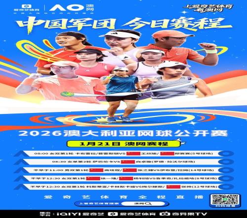 北京時間1月21日,2026澳大利亞網球公開賽第4日比賽將在墨爾本公園全面打響。愛奇藝體育將繼續為您全程直播所有精彩對決。