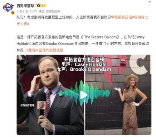 根據(jù)開(kāi)拓者球隊(duì)記者在他最新播客當(dāng)中透露的消息,他認(rèn)為按照目前楊瀚森在發(fā)展聯(lián)盟當(dāng)中的表現(xiàn),接下來(lái)他對(duì)于楊瀚森能夠入選NBA全明星新秀賽一點(diǎn)都不感到意外。雖然關(guān)于這一次全明星新秀賽的最終入選名單還沒(méi)有正式公布,但是外界都在傳言這個(gè)消息,也就意味著楊瀚森有極大的機(jī)會(huì)能夠入選。