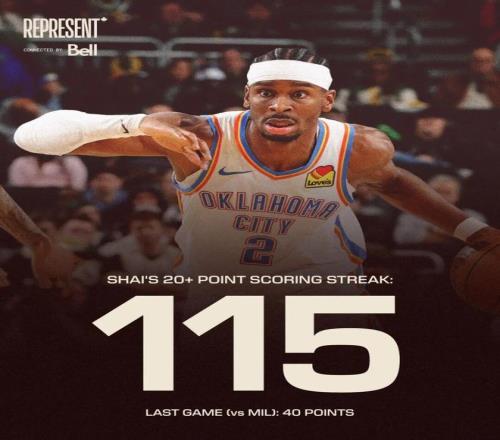 一個最直接的證明,在本場比賽過后,亞歷山大已經(jīng)連續(xù)115場比賽拿下20+,距離超越歷史第一的張伯倫(126場)只需要12場。