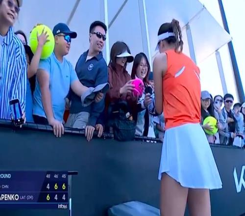 第三盤(pán)的第二局比賽,奧斯塔彭科連續(xù)得分,順利保發(fā)成功。第三盤(pán)的第三局比賽,王欣瑜兩次拿到局點(diǎn)還是沒(méi)能兌現(xiàn),其中出現(xiàn)雙誤,王欣瑜被破發(fā),大比分1比2落后。