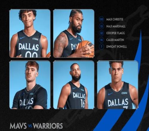 首發陣容方面,獨行俠隊這邊,歐文、濃眉、埃克薩姆、萊夫利二世等多名主力缺陣,教練排出的最新首發五人組為:克里斯蒂、馬紹爾、弗拉格、馬丁、鮑威爾;勇士隊這邊,巴特勒賽季報銷,首發陣容則為:庫里、波杰姆斯基、穆迪、桑托斯、格林。