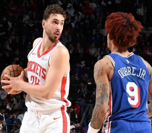 本場比賽火箭有7人得分上雙,阿杜21投13中,三分球8投5中,6罰5中空砍了36分7籃板+8失誤。申京14投僅5中只有13分8籃板7助攻,在和恩比德的對位中全面處于下風,后者19投10中交出了32分15籃板10助攻的三雙。阿門11投7中空砍了17分6籃板9助攻,謝潑德14投僅5中,他們的發(fā)揮效率都不如烏布雷(14投10中貢獻了26分4籃板。)