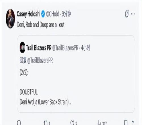 北京時(shí)間1月24日,開(kāi)拓者對(duì)陣猛龍,賽前,開(kāi)拓者官方更新傷病報(bào)告,阿夫迪亞、里斯和羅威都將缺席本場(chǎng)比賽。早先,阿夫迪亞被列為小概率出戰(zhàn),里斯和羅威被列為出戰(zhàn)成疑,如今三人都將不會(huì)參加今天這場(chǎng)比賽。