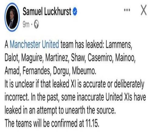 據英國《太陽報》報道,曼聯再次展開內部調查,希望確定是誰在曼徹斯特德比戰賽前泄露首發陣容。該報在比賽前幾小時公布了正確的首發陣容,讓俱樂部管理層覺得臉上無光,因為他們過去多年數次試圖杜絕這種泄密事件,卻依然總有意外發生。