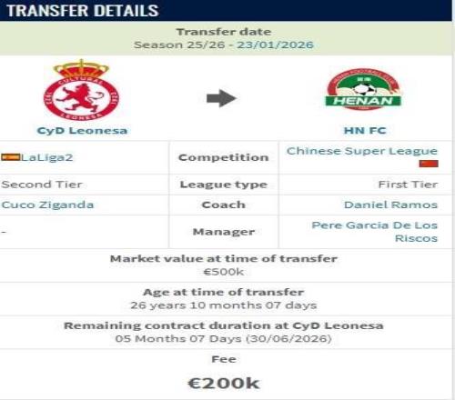 德轉:西乙萊昂文體邊鋒姆布拉加盟河南隊的轉會費為20萬歐 懂球帝 2026-01-24 16:11:43 德轉顯示,西乙萊昂文體邊鋒姆布拉加盟河南隊的轉會費為20萬歐。姆布拉現年26歲,司職邊鋒,曾入選西班牙青年隊,出自巴薩青訓。離開巴薩青年隊后球員效力過摩納哥、馬略卡、維羅納等俱樂部。本賽季球員加盟萊昂文體,期間出場13次,打進1球助攻1次。德轉顯示,姆布拉加盟河南隊的轉會費為20萬歐,現在他的身價為50萬歐元。西甲免費觀看_德轉免費觀看_西乙免費觀看_西甲高清在線_德轉高清在線_西乙高清在線 西甲 德轉 西乙 河南隊 轉會費 維羅納隊 姆布拉加盟 巴塞羅那隊 上一篇: 世體:冬窗進入倒計時,馬競引援工作遠比預期的更為緊迫 下一篇: 阿爾馬達:盡管這段時間有傳聞但我很平靜,我會繼續留在馬競