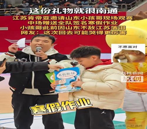 江蘇隊為小孩哥送上全隊簽名的寒假作業