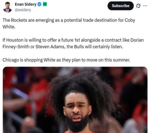 “如果火箭愿意送出一枚首輪+芬尼史密斯或者亞當斯,公牛隊肯定會認真考慮”Evan Sidery寫道。