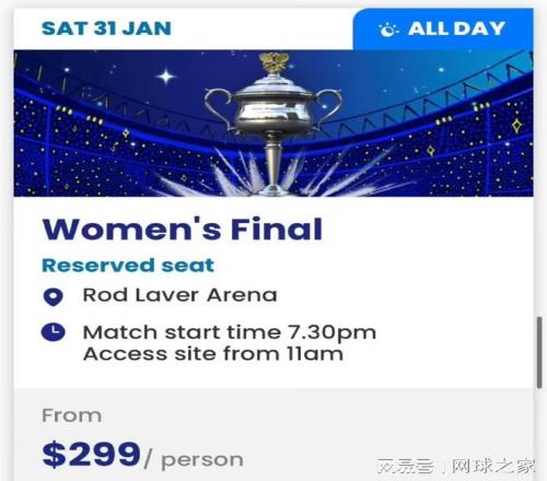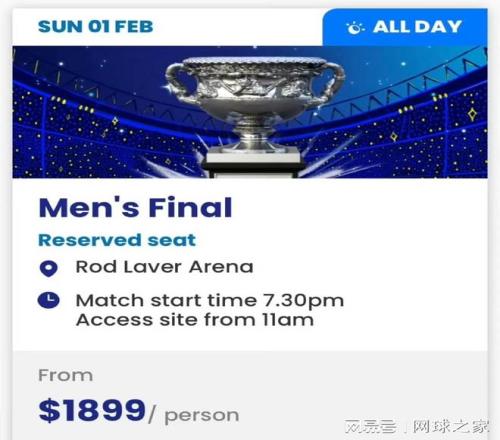 隨著阿爾卡拉斯率先挺入澳網2026男單決賽,賽事門票市場也再度掀起波瀾。據官方售票平臺顯示,男單決賽山頂票價格已逼近2000澳元(約合人民幣9300元)且一票難求。而值得一提的是,相形見絀之下,女單普通門票僅為299澳元,價差高達近7倍,這一現象引發廣泛討論。