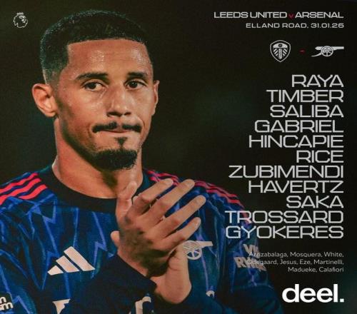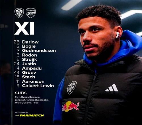 利茲聯vs阿森納:哲凱賴什、哈弗茨首發,特羅薩德、薩卡出戰 懂球帝 2026-02-01 01:18:08 北京時間1月31日23:00,英超第24輪繼續進行,阿森納客場挑戰利茲聯,本場比賽在埃蘭路球場進行,賽前雙方首發陣容陸續公布:阿森納首發:1-拉亞、12-廷貝爾、2-薩利巴、6-加布里埃爾、5-因卡皮耶、41-賴斯、36-蘇比門迪、29-哈弗茨、7-薩卡、19-特羅薩德、14-哲凱賴什利茲聯首發:26-達洛、2-博格爾、3-古德蒙松、6-喬-羅頓、5-斯特魯伊克、24-詹姆斯-賈斯廷、4-阿姆帕杜、44-格魯耶夫、18-施塔赫、11-阿倫森、9-卡爾弗特-勒溫【上咪咕獨家看英超】英超免費觀看_阿森納免費觀看_利茲聯免費觀看_英超高清在線_阿森納高清在線_利茲聯高清在線 英超 阿森納 利茲聯 哲凱賴什 加布里埃爾 凱·哈弗茨 加雷斯·貝爾 蘇拉祖·薩卡 萊昂德羅·特羅薩德 上一篇: 賴斯談英超300次出場:如同做夢,我從未想過自己會走這么遠 下一篇: 馬爾科席爾瓦15次戰曼聯輸9場,僅對陣曼城時輸球場次更多
